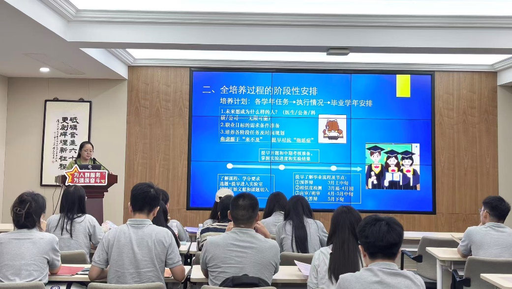 最后,杨晓雯老师通过学业规划、就业去向、校纪校规和园区安全等方面的细致讲解为此次新生入学教育活动画上了圆满的句号。在日常安全方面,杨老师聚焦新生日常生活中的安全需求,通过分享防诈骗视频和案例提醒同学们应时刻牢记安全底线,切实提高安全防范意识,从细节处杜绝安全隐患,确保平稳平安地度过研究生阶段的学习生活与科研时光。在学业规划板块,杨老师结合历届师兄师姐的就业规划情况详细梳理了不同方向的就业准备,为新生提供了直观的职业发展路径参考;同时,她特别叮嘱新生要以清晰的奋斗目标为指引,持续深耕专业领域,为平安圆满地度过研究生生涯、实现专业理想打下坚实的基础。