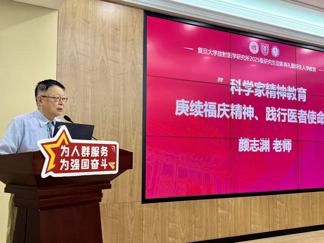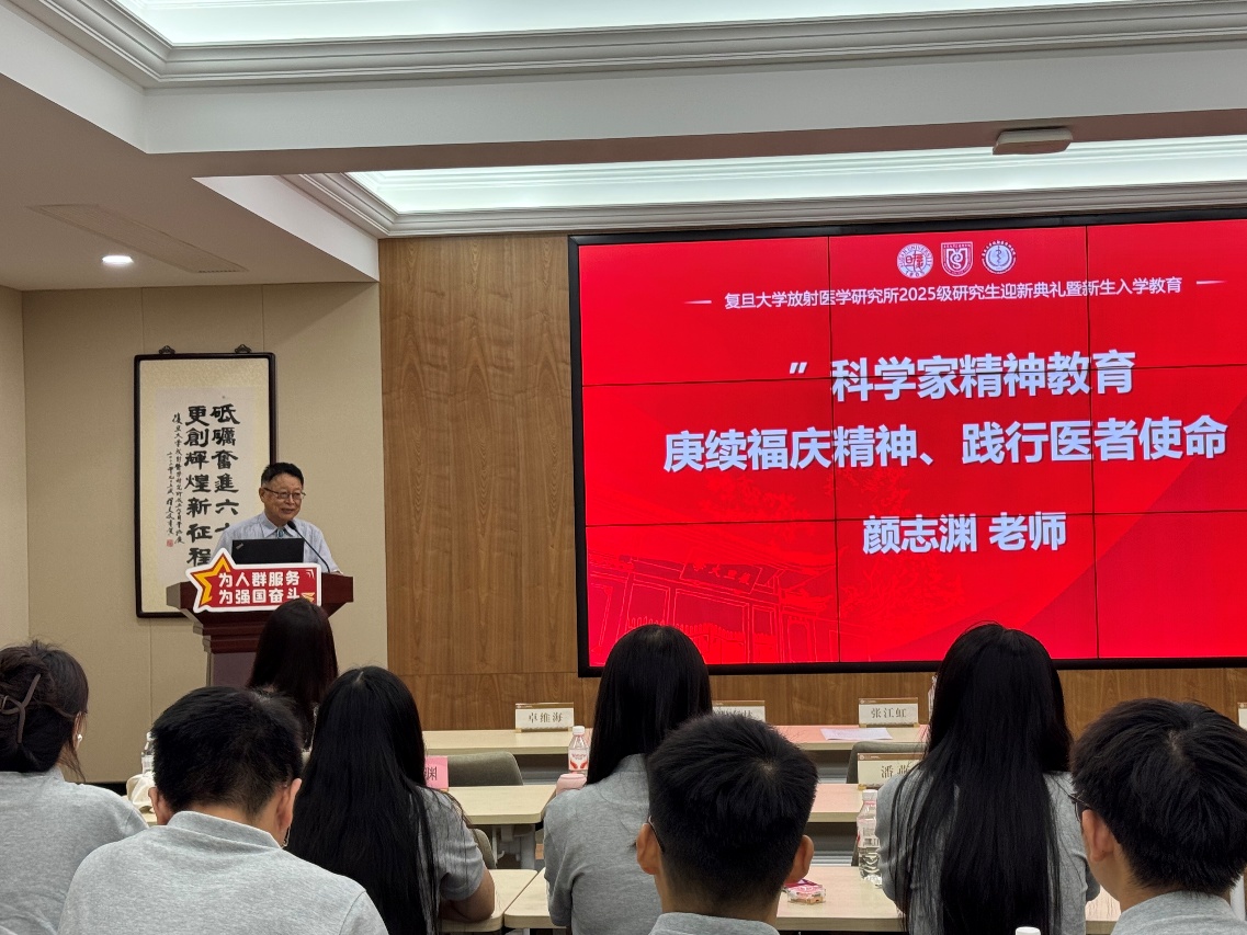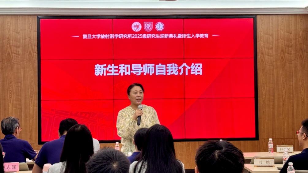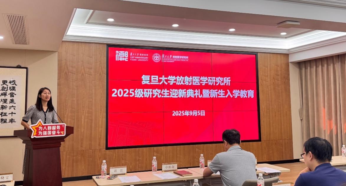 2025年9月5日上午九时,复旦大学放射医学研究所(以下简称“放医所”)在二号楼二楼报告厅举行2025级研究生迎新典礼暨新生入学教育活动。放医所党总支书记蒋蕾、所长邵春林、副所长卓维海、全体研究生新生导师、辅导员以及2025级全体新生出席本次典礼,典礼由蒋蕾书记主持。