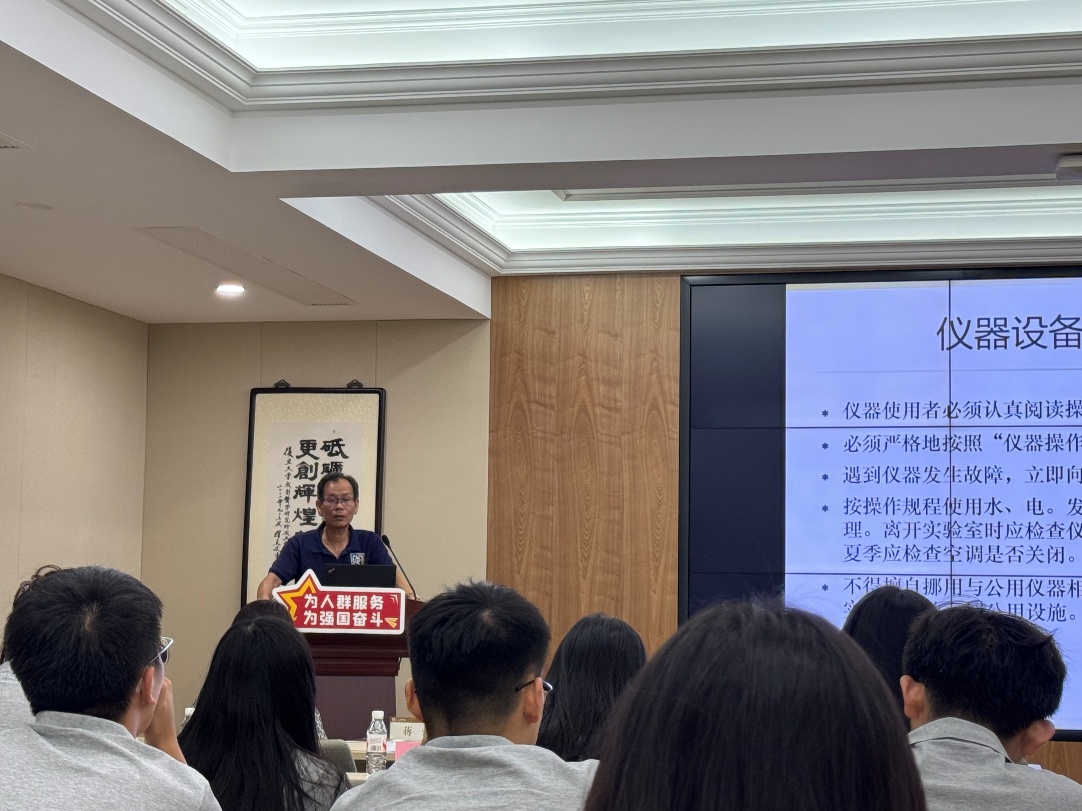 卓维海副所长从生活与科研两个方面,为刚进入科研团队的新生开展了细致深入的安全教育培训。卓老师详细讲述了近年发生的交通意外或网络诈骗的案例,通过剖析事件发生的诱因、过程及后续影响,用真实可感的讲解让同学们深刻认识到人身安全重要性。在实验室方面,他着重提醒新生们,从首次接触实验设备与试剂开始,就必须熟练掌握操作流程,杜绝侥幸心理,将每一个操作步骤都严格落实到位,切实筑牢安全防护的第一道防线。引导大家主动学习相关知识,确保在突发情况面前能科学应对、有效避险。