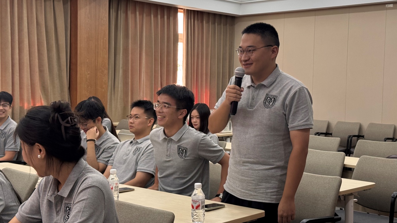 在师生相互介绍和了解的环节,研究生新生导师逐一简短介绍了自己的研究方向以及团队组成,并表达了对新生同学的热烈欢迎。随后,来自五湖四海的新同学们依次介绍了自己的姓名、家乡、学习经历、兴趣爱好以及对未来的规划与期待等。短短十几分钟,十四名新生与导师在欢声笑语中完成“破冰”——新的学术故事,从此刻开始写起。