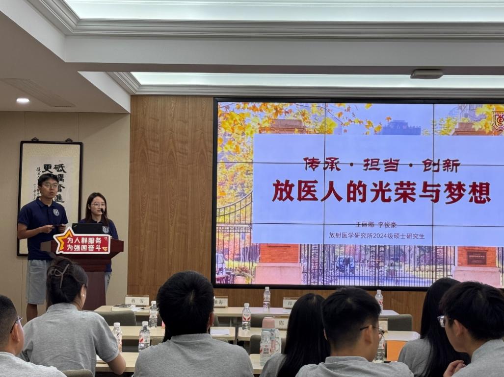 2024级硕士研究生王丽娜和李俊豪以“放医人的光荣与梦想”为主题,为新生们讲解了放医所自创办以来的发展历程。六十多年前,初代放医人怀揣着“为国铸盾”的赤诚之心,毅然投身“两弹一星”工程的辐射防护研究事业。从创立之初,放医所就始终锚定“科研为民、服务国家”的方向,为守护国家核安全与公众健康贡献力量。相信在历史精神的感召下,放医所2025 级新生将以更坚定的信念、更饱满的热情投身于学习与科研,在传承中创新,在担当中共进,为放射医学事业的未来书写新的篇章。