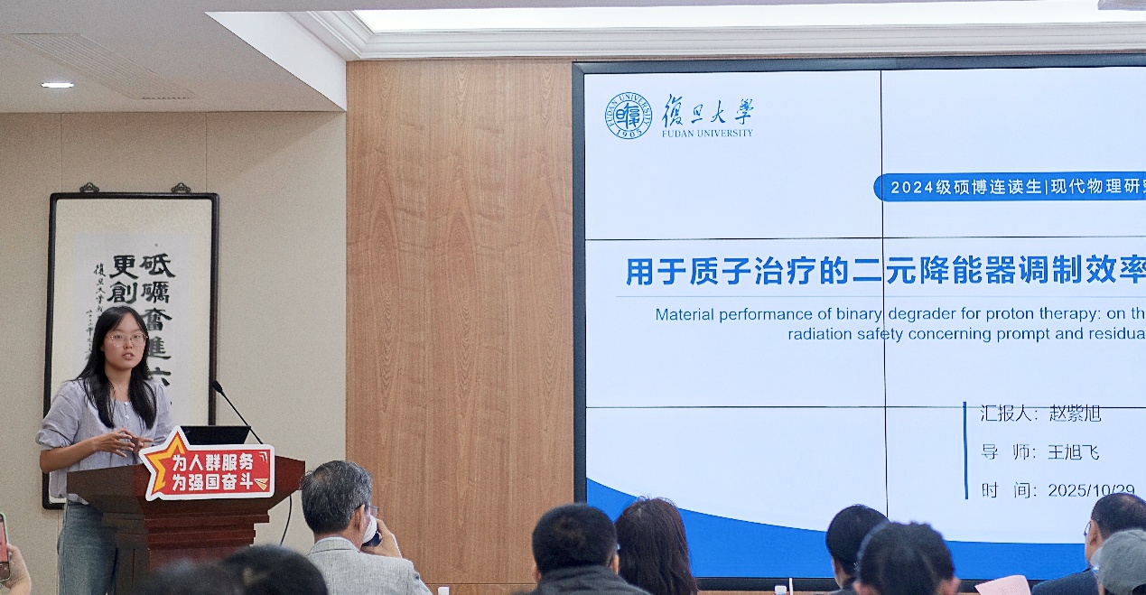 (四)复旦大学现代物理研究所博士研究生赵紫旭围绕“质子治疗用二元降能器的调制效率和辐射安全性能研究”,展示了其对质子治疗设备性能优化的路径,助力提升质子治疗的安全性与有效性。
