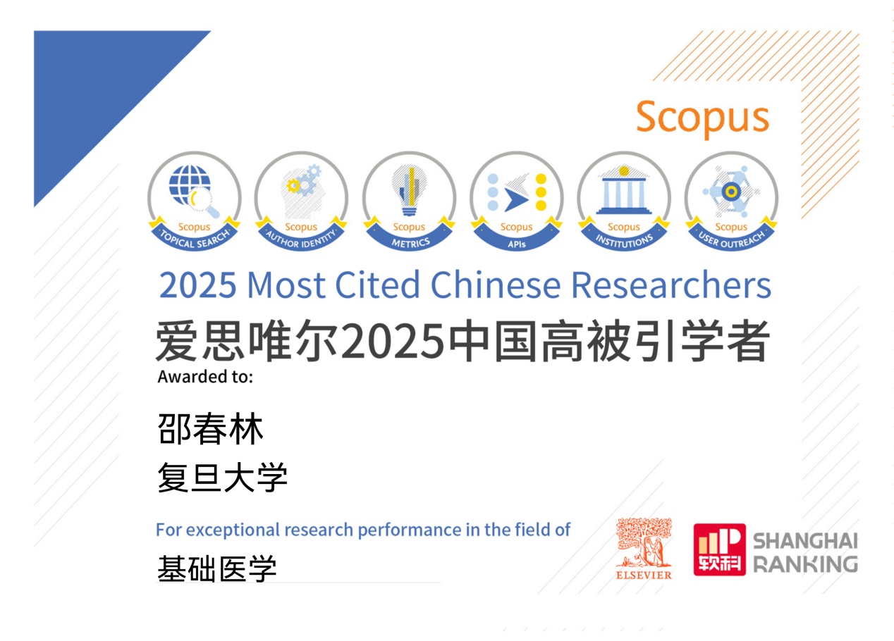 喜报 | 复旦大学邵春林研究员连续三年入选“中国高被引学者”榜...